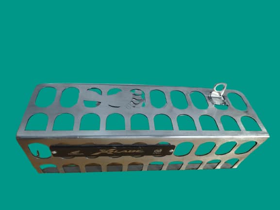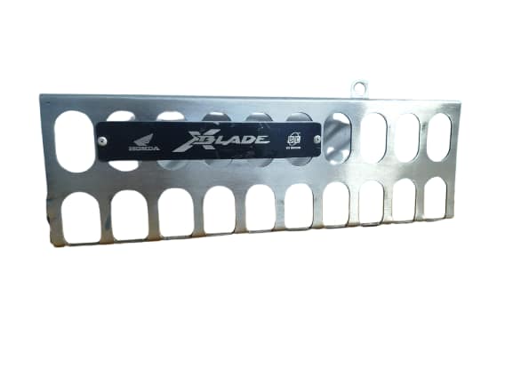 Protect your bike with a premium Honda X-Blade CNC silencer guard. Durable SS design ensures style, safety, and long-lasting exhaust protection.